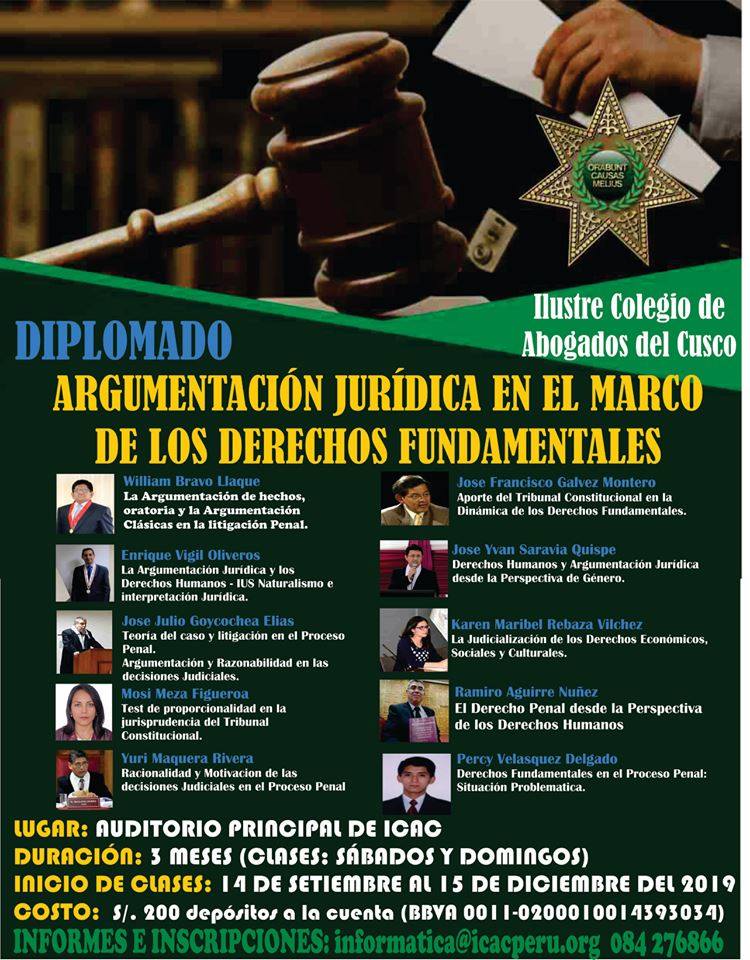 El 14 de setiembre del 2019, nuestro Socio Fundador Enrique Vigil Oliveros estuvo presente en el el Diplomado ARGUMENTACIÓN JURÍDICA EN EL MARCO DE LOS DERECHOS FUNDAMENTALES en la ciudad del Cuzco con el Tema La Argumentación Jurídica y los Derechos Humanos.